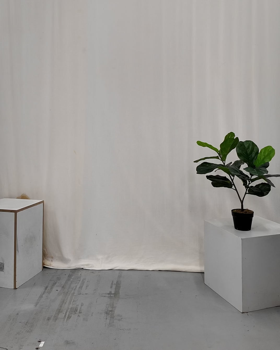 Two people sitting on a stool in a studio setting with photography equipment.