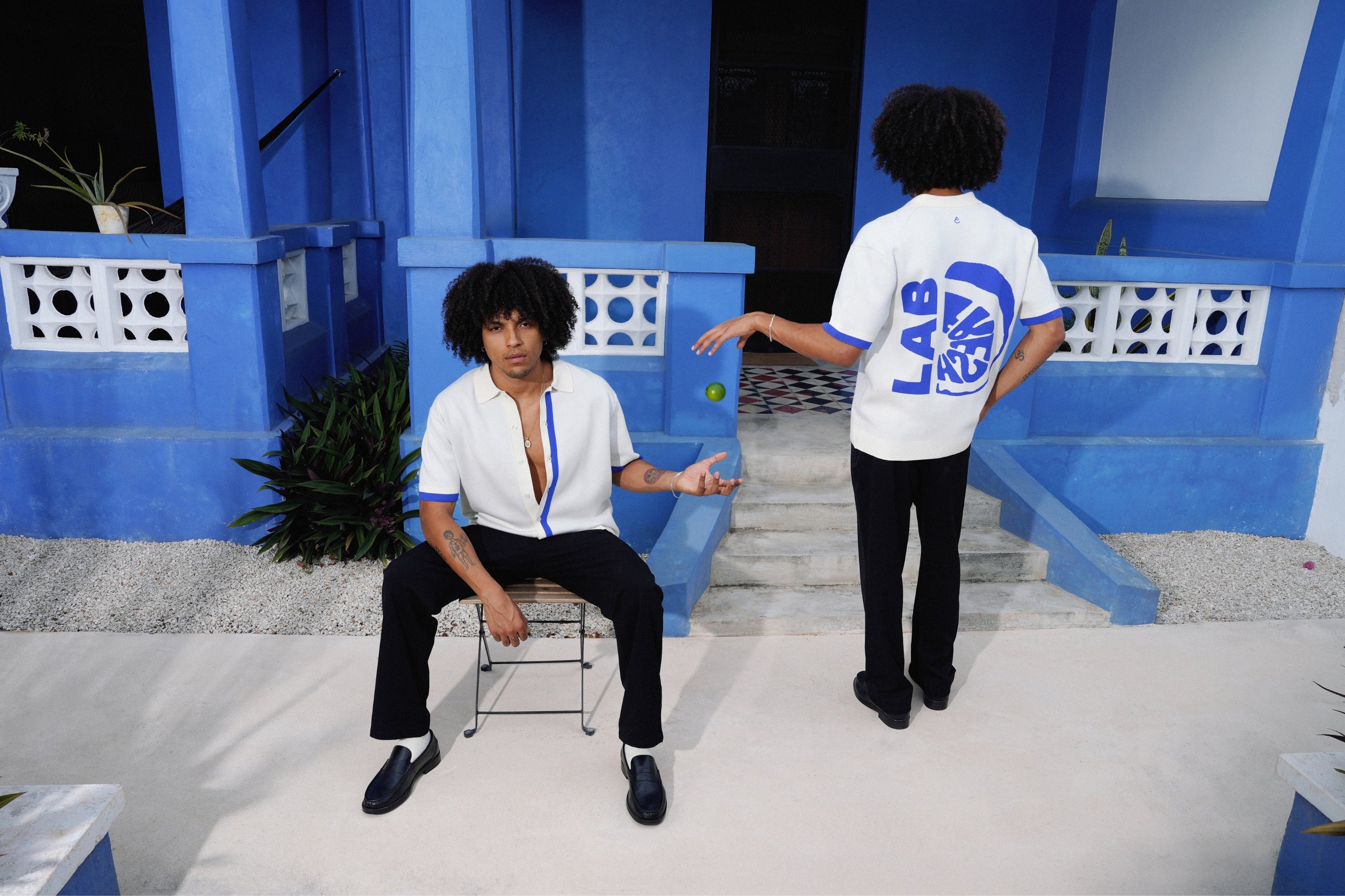 Short sleeve, Off white / Cobalt blue